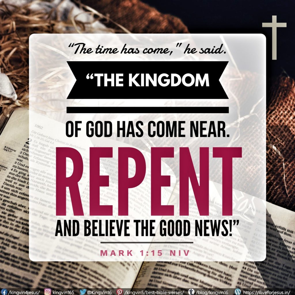 Jesus commanded: “The time is fulfilled, and the kingdom of God is at hand; repent and believe in the gospel” (Mark 1:15 NASB).